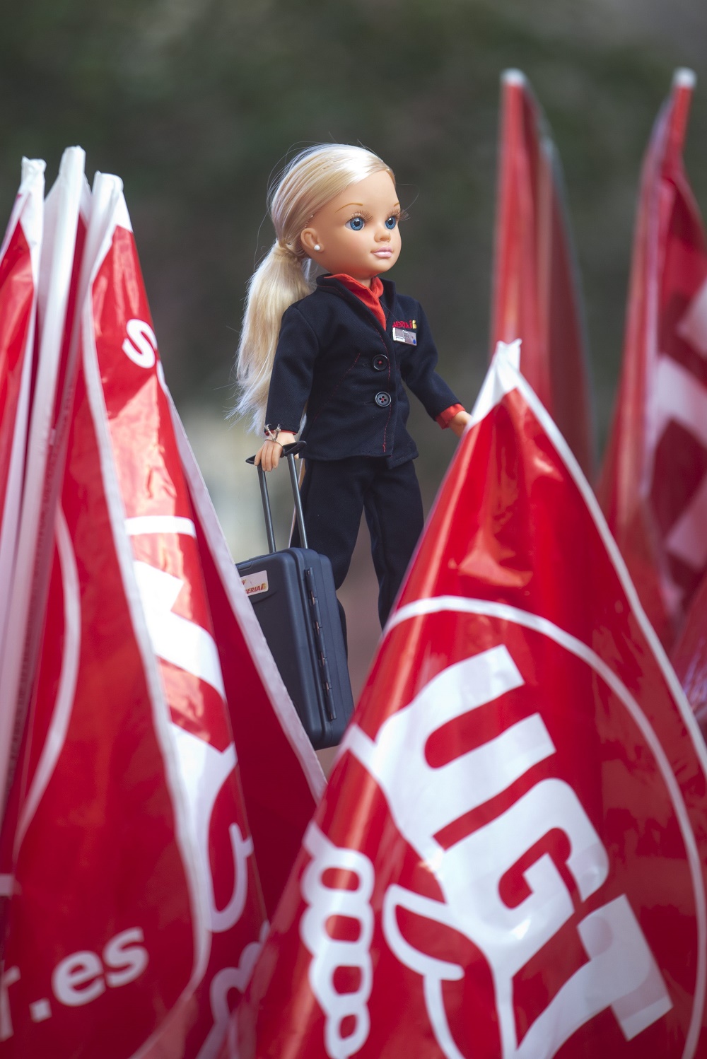 Bábika letušky španielskej leteckej spoločnosti Iberia počas štrajku v roku 2013.