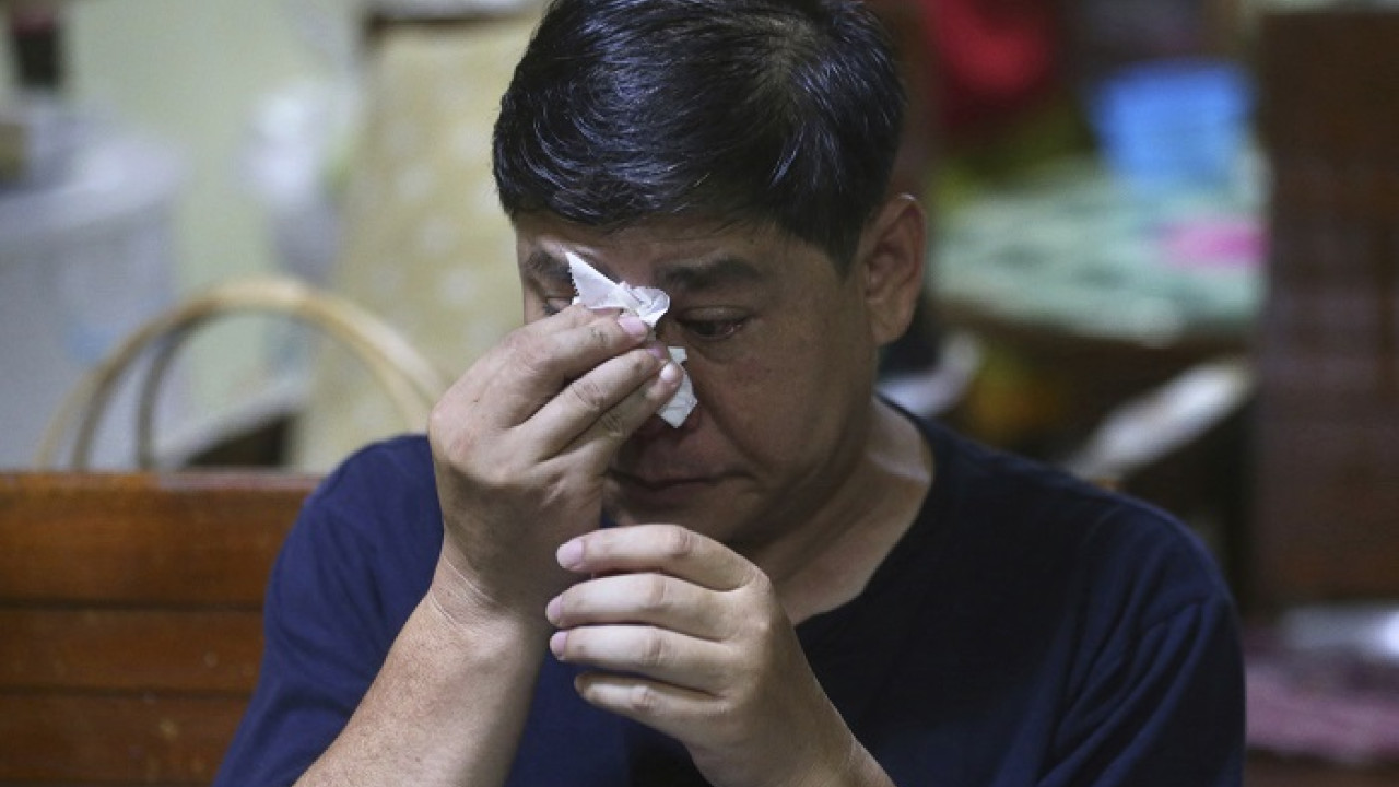 Banphot Konkum, strýko jedného zo zachránených chlapcov sa neubránil slzám. Foto - TASR/AP
