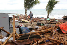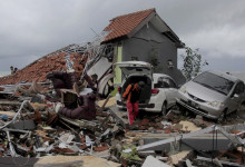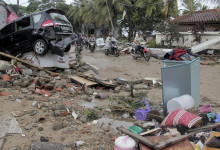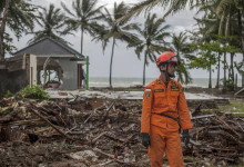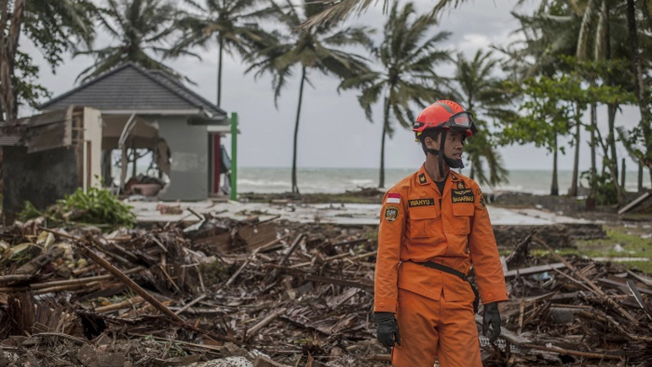 Indonézska Meteorologická, klimatologická a geofyzikálna agentúra (BMKG) uviedla, že príčinou cunami bola erupcia sopky Anak Krakatoa, ktorá spustila podmorské zosuvy pôdy. Sopka leží v Sundskom prielive. Ten sa nachádza medzi ostrovmi Sumatra a Jáva a spája Jávske more s Indickým oceánom. K erupcii sopky došlo podľa BMKG približne 24 minút pred príchodom cunami. Foto - TASR/AP
