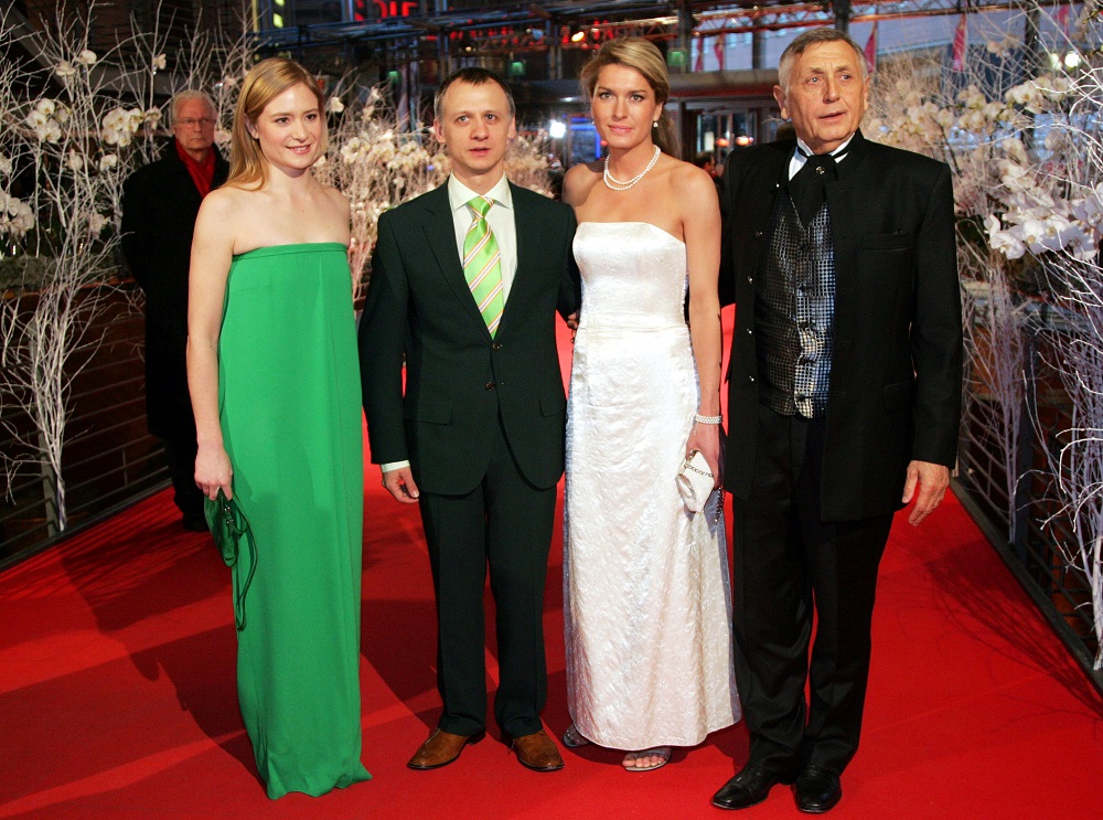 Nemecká herečka Julia Jentschová (vľavo), vedľa bulharský herec Ivan Barnev a český pár, režisér Jiří Menzel (vpravo) s manželkou počas prezentácie filmu Obsluhoval jsem anglického krále v roku 2007 v Berlíne. Foto - TASR/AP