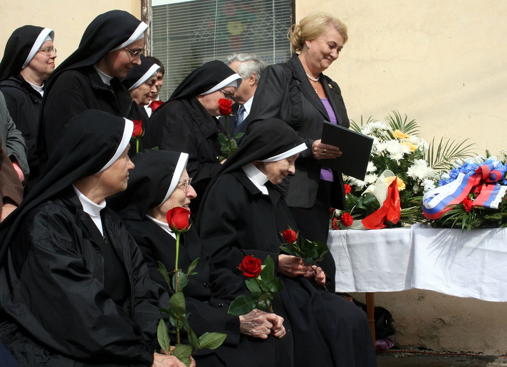 Nováckemu rodákovi stredoškolskému profesorovi, historikovi, spisovateľovi, zakladateľovi nováckeho skautingu, nespravodlivo väznenému komunistickým režimom Rudolfovi Jurikovi (1923-2001) v roku 2010 v Novákoch slávnostne odhalili pamätnú tabuľu. Sestry rehole Notre Dame prišla pozdraviť europoslankyňa Anna Záborská. Foto TASR - Pavol Remiaš