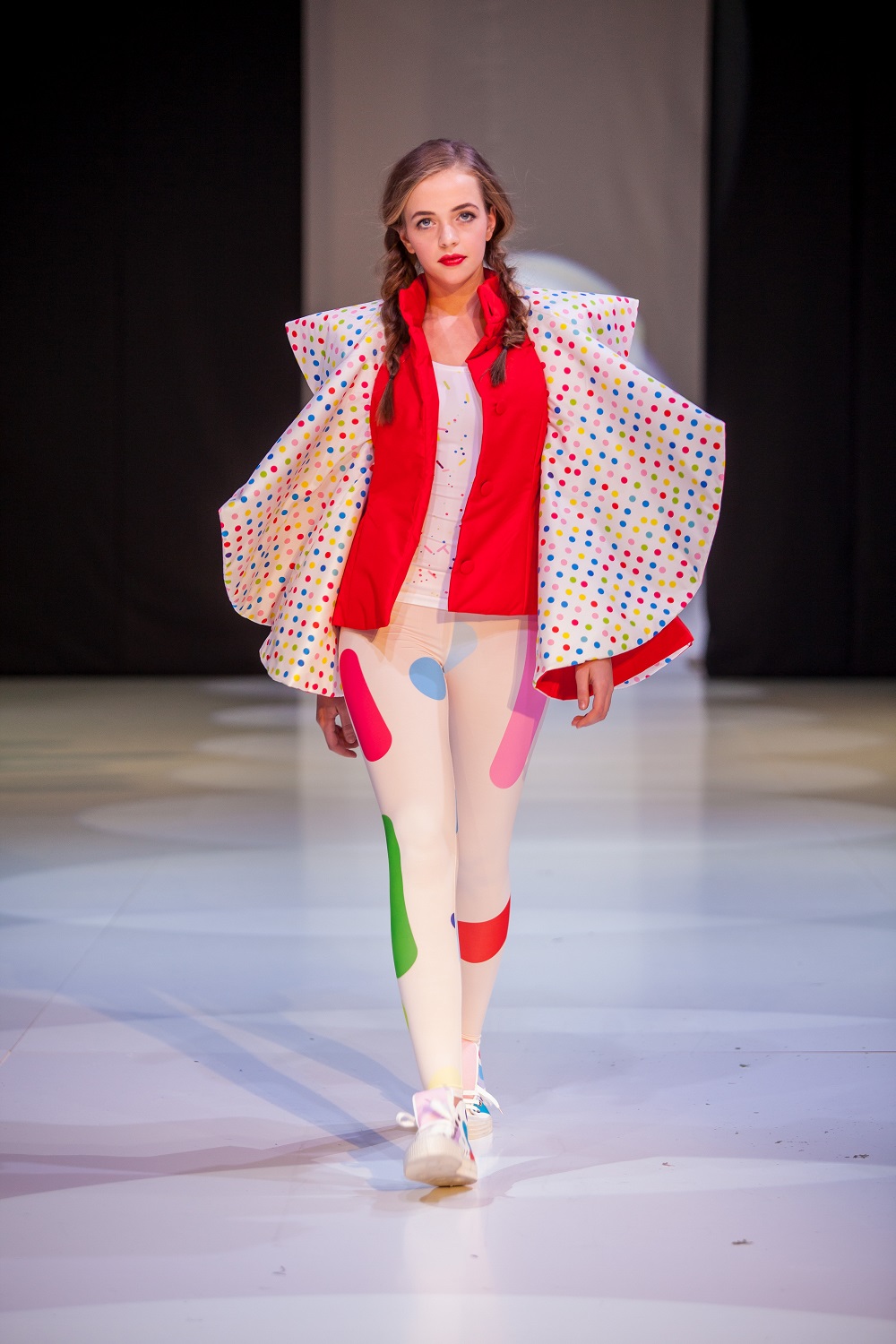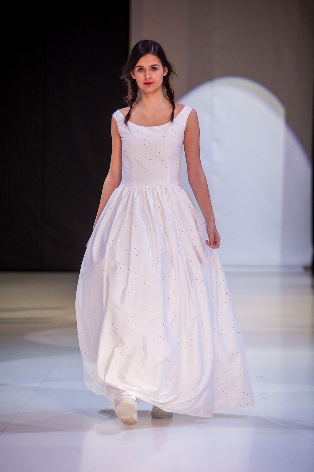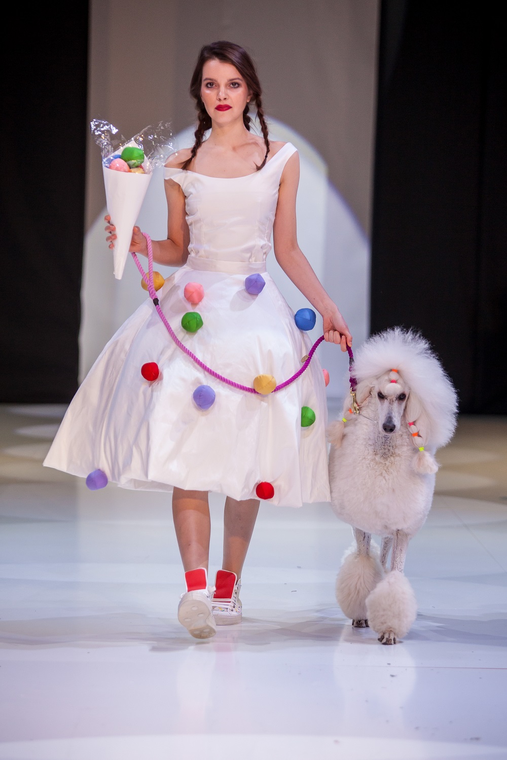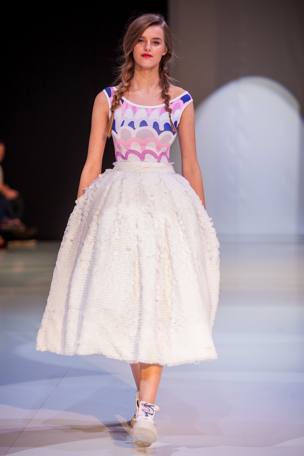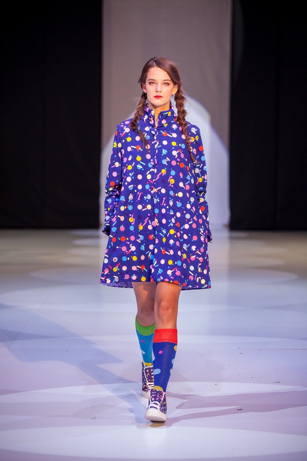 Modely boli farebné, bodky a kruhy boli rozohrané do pestrofarebných dezénov a premyslených strihov. Aj tento rok spolupracovala Lenka Sršňová s textilnou dizajnérkou Michaelou Bednárovou, ktorá vytvorila bonbónové dezény.