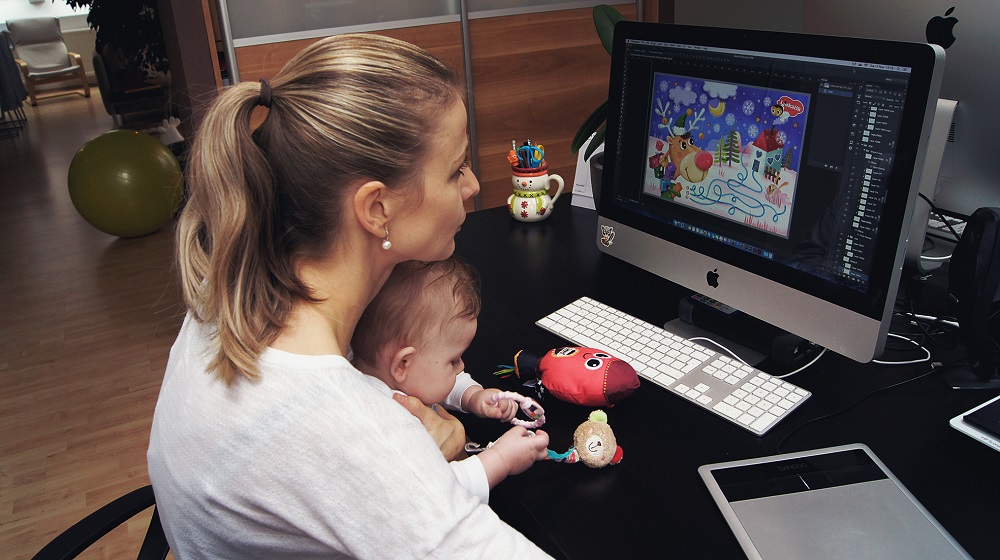 „Niektoré projekty som ani neprerušila, dohodli sme sa, že keď sa dám dokopy, začnem opäť ilustrovať. Teo mal pol roka a ja som stále “len” mama. Milujem ho, nemenila by som, práca mi však chýba. Nepredstavovala som si, že to bude také náročné obdobie. Musela som trochu zreálniť svoje očakávania, nestretávať sa s matkami, ktorým bábätká prespia pol dňa..:) Dúfam, že raz bude spať dlhšie ako hodinu denne, v noci sa nebudeme budiť každú hodinu a ja začnem opäť kresliť. Pre mňa je to nová skúsenosť – nepracovať. Uvedomujem si však, že sa momentálne starám o prvého recenzenta svojich nových ilustrácií a tak si ho musím rozmaznávať.“