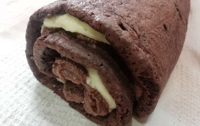 - Ešte teplé cesto na kakaovú roládu spolu s vlhkou utierkou zrolujeme. Necháme ho odpočívať do vychladnutia. Po vychladnutí roládu naplníme.
