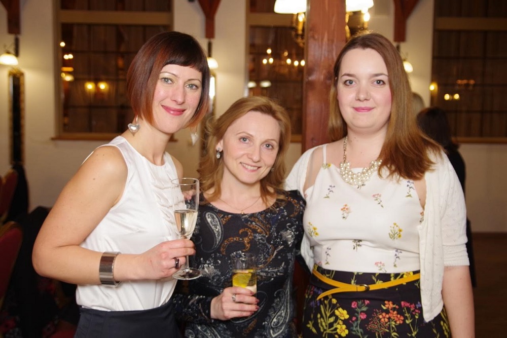 Ženou v meste 2016 sa stala floristická dizajnérka Jarka Bašistová (vľavo), ktorá získala 40 percent hlasov. Na našej oslave sa zoznámila so Ženou v meste 2015 Gabikou Čepičanovovou. V strede stĺpčekárka portálu Ženy v meste Monika Bothová, autorka oboch príbehov. Foto - Stano Stehlík