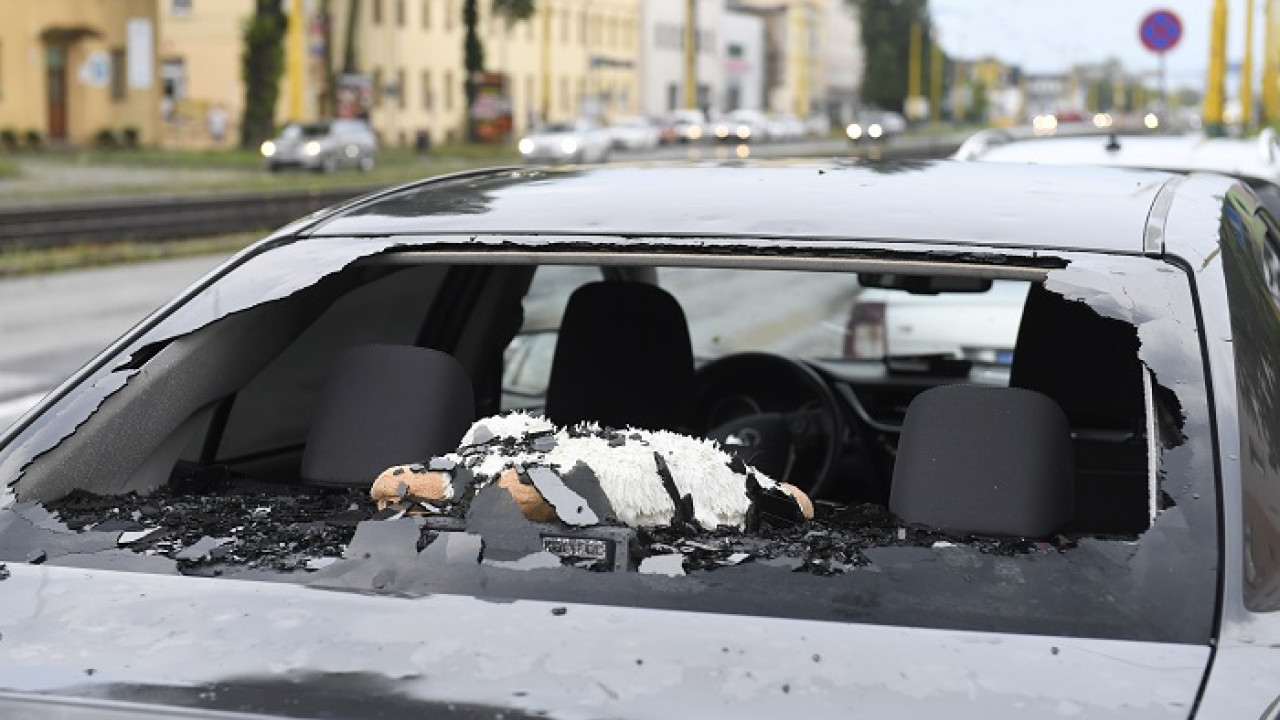 Krúpy počas búrky v Košiciach rozbíjali aj autá. Foto - TASR
