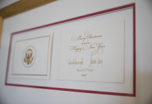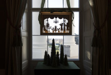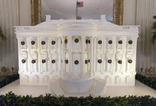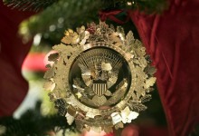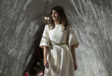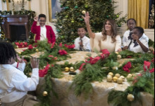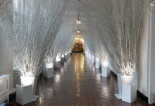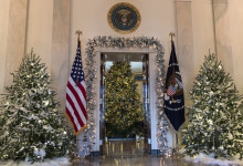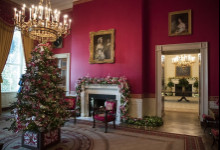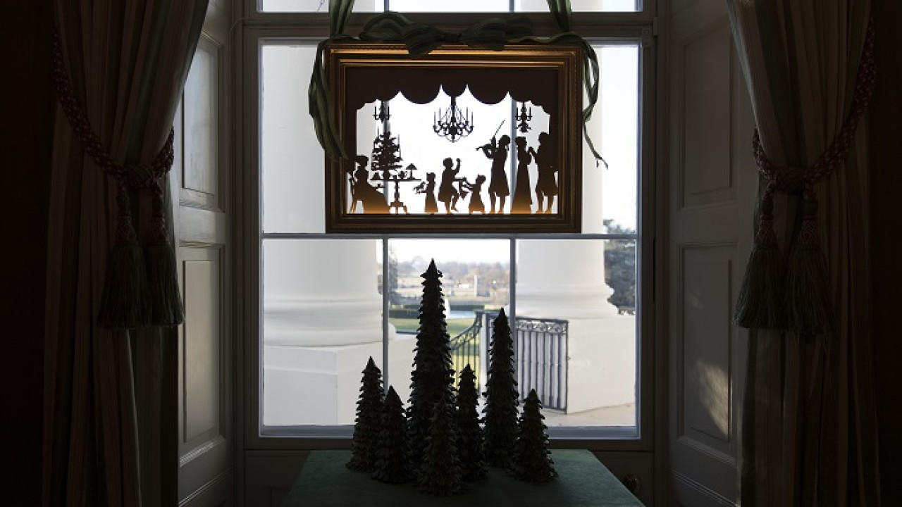 Nové sú tento rok venčeky visiace zvonku z každého okna. Takisto nové sú lesknúce sa biele zimné konáre lemujúce chodbu vo Východnom krídle, ktorá vedie hostí k stromu skrášlenému oficiálnou vianočnou ozdobou rodiny Trumpovcov. Na snímke okno v Zelenej izbe počas prehliadky vianočnej dekorácie v Bielom dome. Foto - TASR/AP