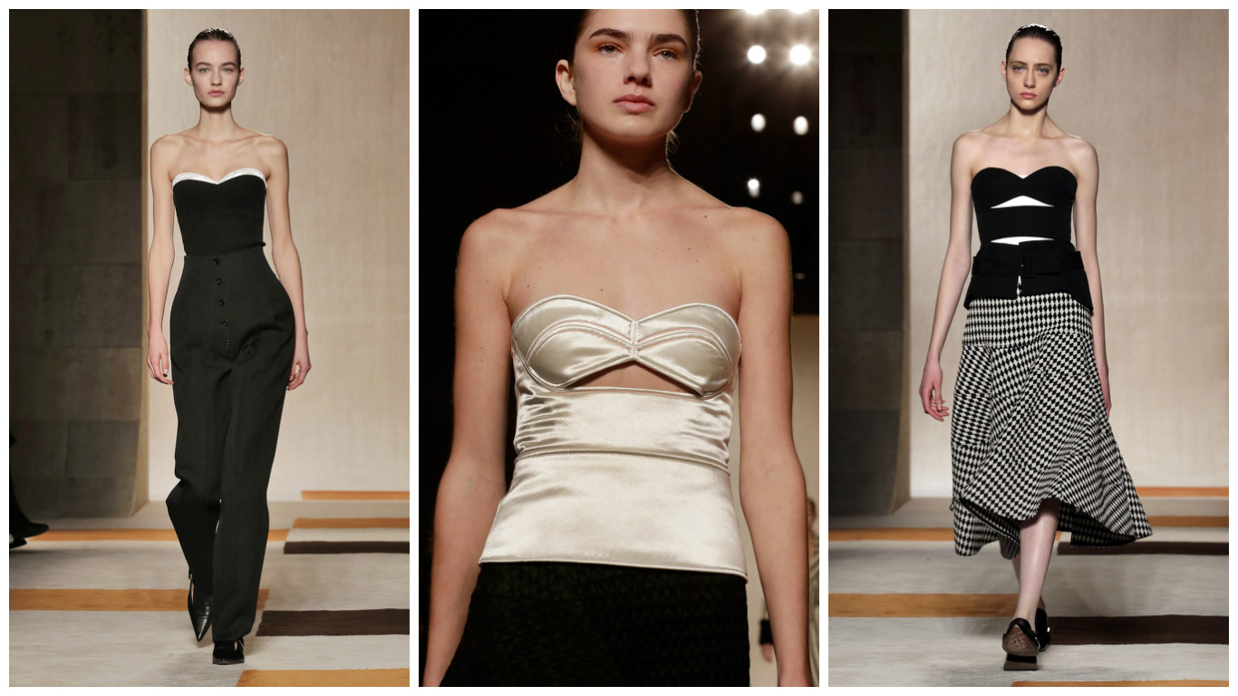 Korzety z dielne Victorie Beckham na Fashion Week v New Yorku.