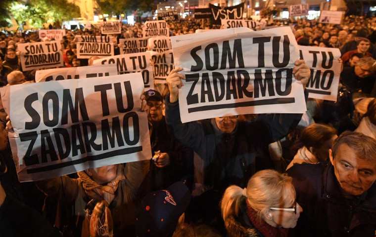 Na protest prišlo do Bratislavy podľa odhadov 18 až 20-tisíc ľudí a mnohí držali v ruke nápis Som tu zadarmo.