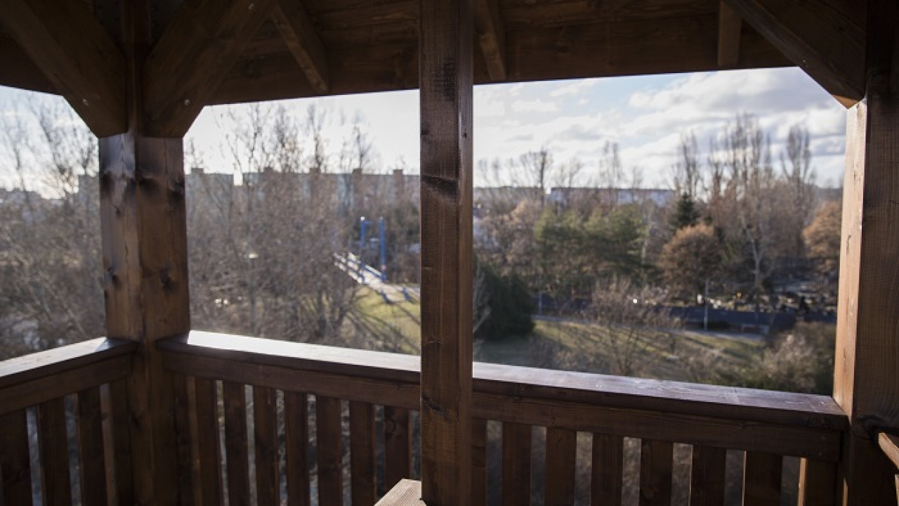 Vrchné podlažie a výhľad z novootvorenej rozhľadne v lesoparku bratislavskej mestskej časti Vrakuňa. Foto TASR – Jaroslav Novák