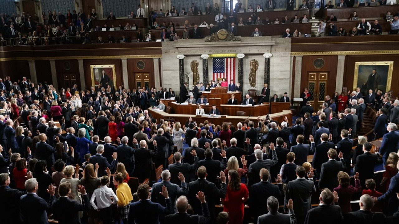 Zasadnutie nového Kongresu, v ktorom Republikánska strana stratila v novembrových voľbách väčšinu v Snemovni reprezentantov, predstavuje podľa AFP mocenský posun v prospech demokratov iba dva roky pred voľbami amerického prezidenta. Prísahu zložilo v novej snemovni 235 demokratov a 199 republikánov s tým, že obsadenie jedného zo 435 miest v snemovni zatiaľ nie je zrejmé. Prísahu skladali taktiež noví členovia 100-členného Senátu, ktorý je druhou komorou Kongresu. Republikáni momentálne kontrolujú v Senáte 53 miest, demokrati 45, pričom dve kreslá sú obsadené nezávislými kandidátmi, podporujúcimi demokratov. Foto - TASR/AP