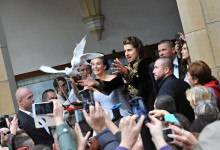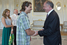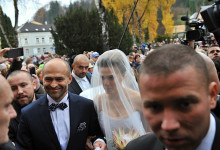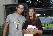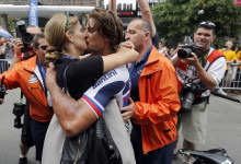 Peter Sagan bozkáva svoju priateľku Katarínu Smolkovú po tom, čo zvíťazil v pretekoch mužov Elite s hromadným štartom v rámci majstrovstiev sveta v cestnej cyklistike 27. septembra 2015 v americkom Richmonde. Foto - TASR/AP