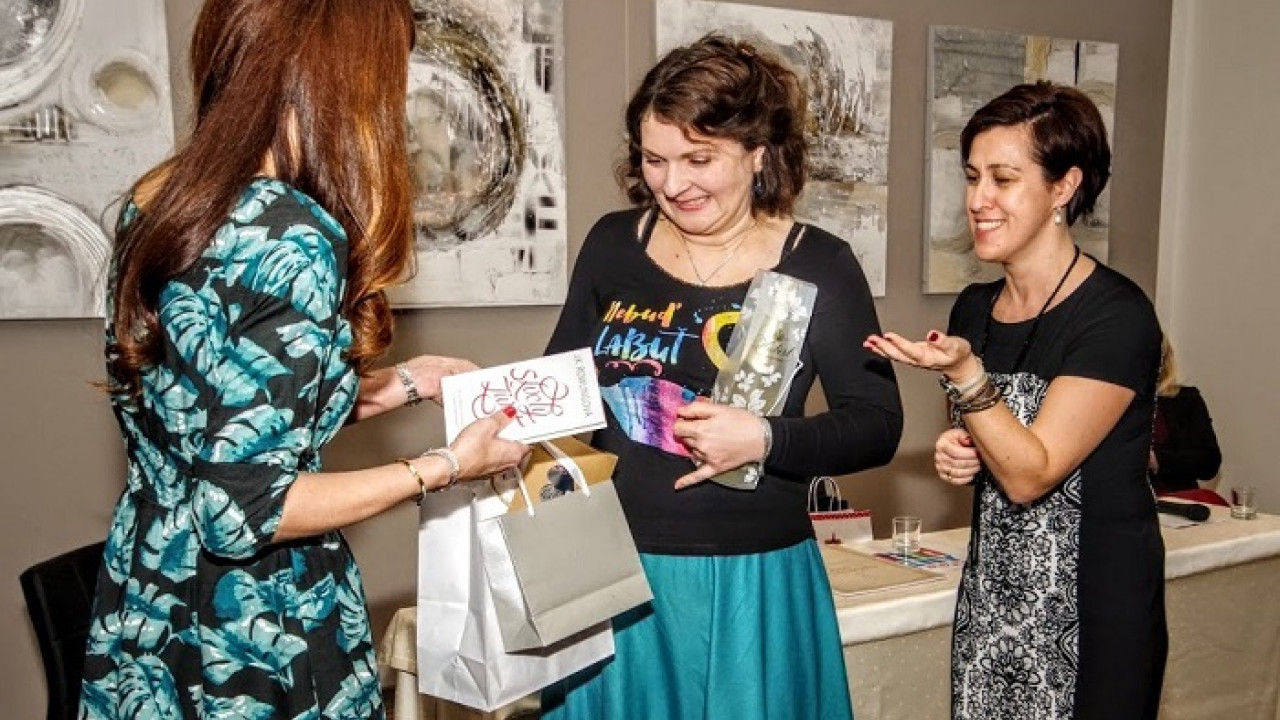 Na druhom mieste skončila podnikateľka Zora Puškáčová, ktorá má vlastnú značku tričiek KuraHarabura. Dostala šperky od Monde d´Alexandra, šampanské Hubert a novinku vydavateľstva Ikar Skvelý život. Foto - Stano Stehlík