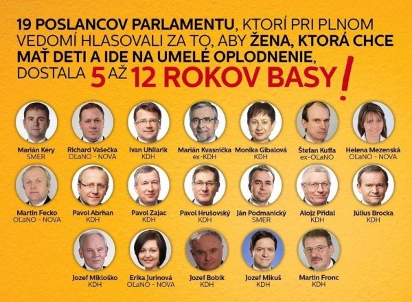 Rok 2015 sa na Slovensku začal referendom o ochrane rodiny a končil sa hlasovaním v parlamente, v ktorom 19 poslancov, z toho tri ženy - Monika Gibalová z KDH, Erika Jurinová a Helene Mezenská, obe OľaNO-NOVA, podporili kontroverzný návrh zákona. Súčasťou zákona bol návrh, aby žena aj lekár dostali za interrupciu doživotné väzenie, a aby za umelé oplodnenie hrozilo obom rodičom i lekárovi 5 až 12 rokov väzenia. Návrh neprešiel a vyvolal tvrdú kritiku za to, že sa vôbec dostal na pôdu parlamentu.