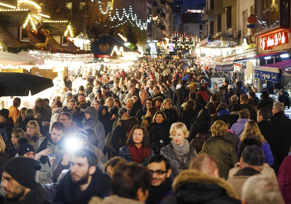 Tisícky ľudí na vianočných trhoch v nemeckom Frankfurte nad Mohanom.