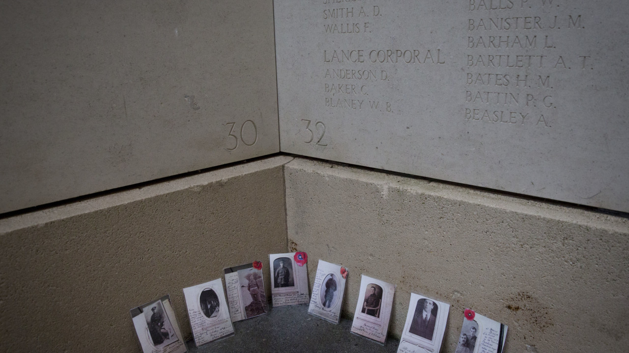 Fotografie a odkazy pre belgických vojakov, ktorí zahynuli počas prvej svetvoej vojny. Foto - TASR/AP