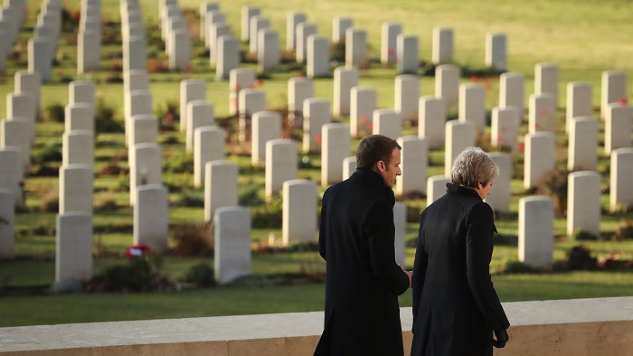 Francúzsky prezident Emmanuel Macron a britská premiérka Theresa Mayová počas návštevy cintorína Thiepval na severe Francúzska. Macron a Mayová si uctili pamiatku padlých francúzskych a britských vojakov na vojenskom cintoríne Thiepval pri príležitosti osláv 100. výročia ukončenia prvej svetovej vojny.