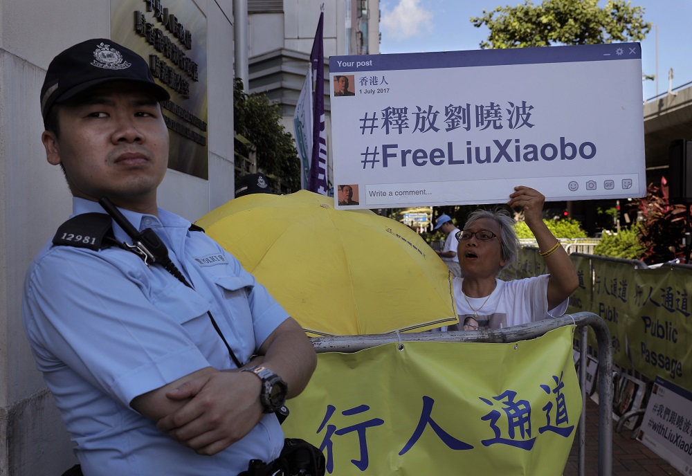 Protest za prepustenie nositeľa Nobelovej cena za mier Liou Siao-poa. Foto - TASR/AP