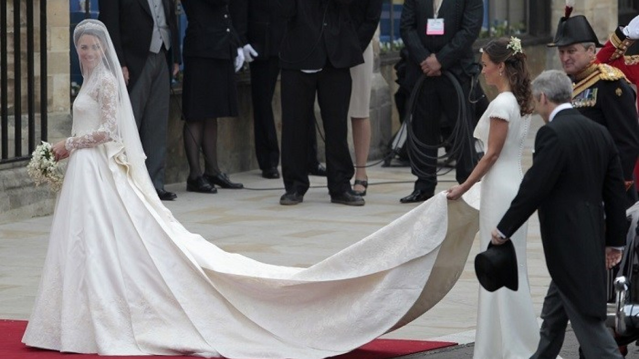 Kate Middletonová (vľavo) prichádza na svoju svadbu s britským princom Williamom do Westminsterského opátstva, vpravo jej sestra Pippa Middletonová, ktorá médiá veľmi zaujala. Na svadbu bolo pozvaných 2000 hostí, od členov kráľovských rodín až po prominentov vrátane hudobníkov Eltona Johna a Paula McCartneyho, britskej futbalovej hviezdy Davida Beckhama s manželkou Victoriou alebo herca Rowana Atkinsona.