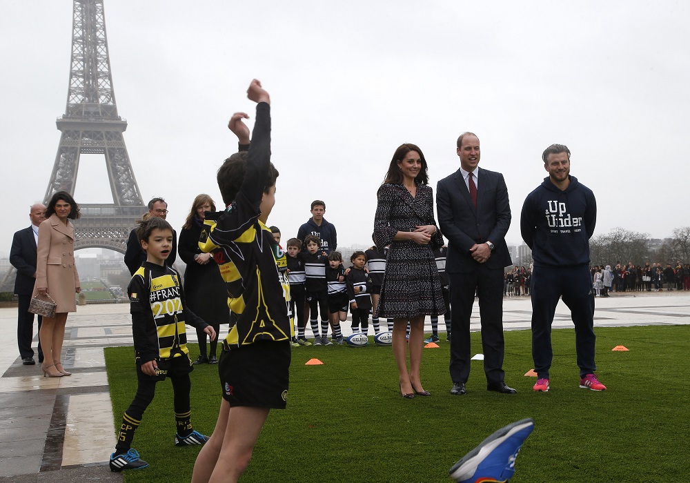Počas stretnutia s malými fanúšikmi rugby pred Eiffelovou vežou. Foto - TASR/AP