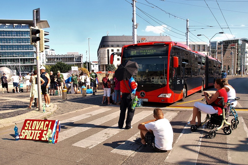 Odmietajú novelu, podľa ktorej by sa malo pri tvorbe opatrení prihliadať na digitálny COVID preukaz. Zablokovali cesty pred Hodžovým námestím, križovatku pri Suchom mýte či Štefánikovu ulicu. Protest nie je ohlásený.