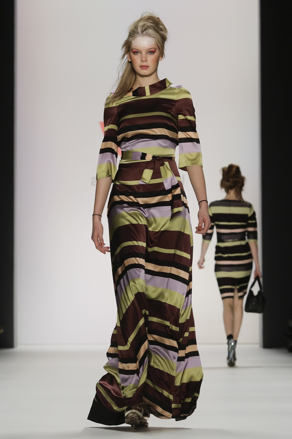 Na móle prezentovala veľmi ženské modely, inšpirované barmskou bojovníčkou za slobodu a držiteľkou Nobelovej ceny za mier Aung San Su Ťij. „Rada využívam veľké ženy ako vzor pre moje kolekcie,“ povedala.