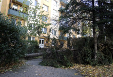 Vyvrátené stromy po víchrici v Trenčine. Foto TASR - Radoslav Stoklasa