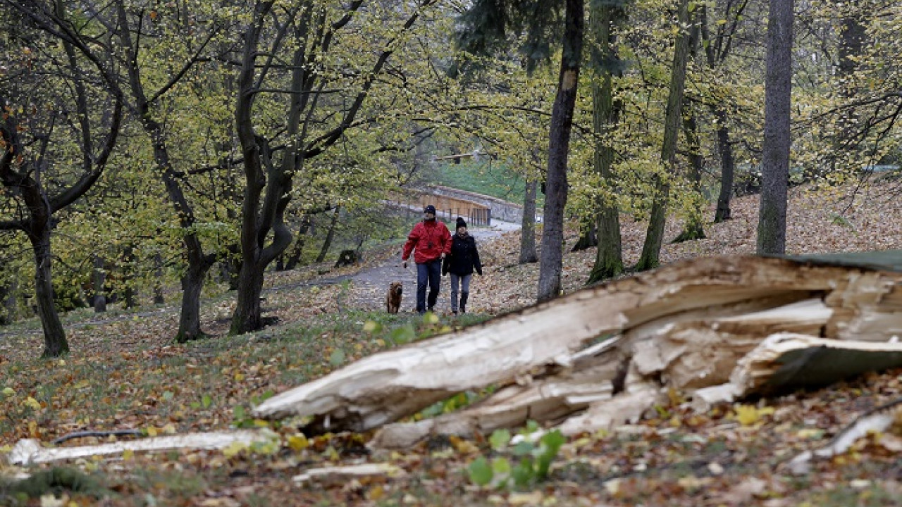Spadnutý strom v pražskom parku Stromovka. Mimoriadne silný vietor, ktorý zasiahol veľké územie Česka si doteraz vyžiadal dva ľudské životy. Foto - TASR/AP