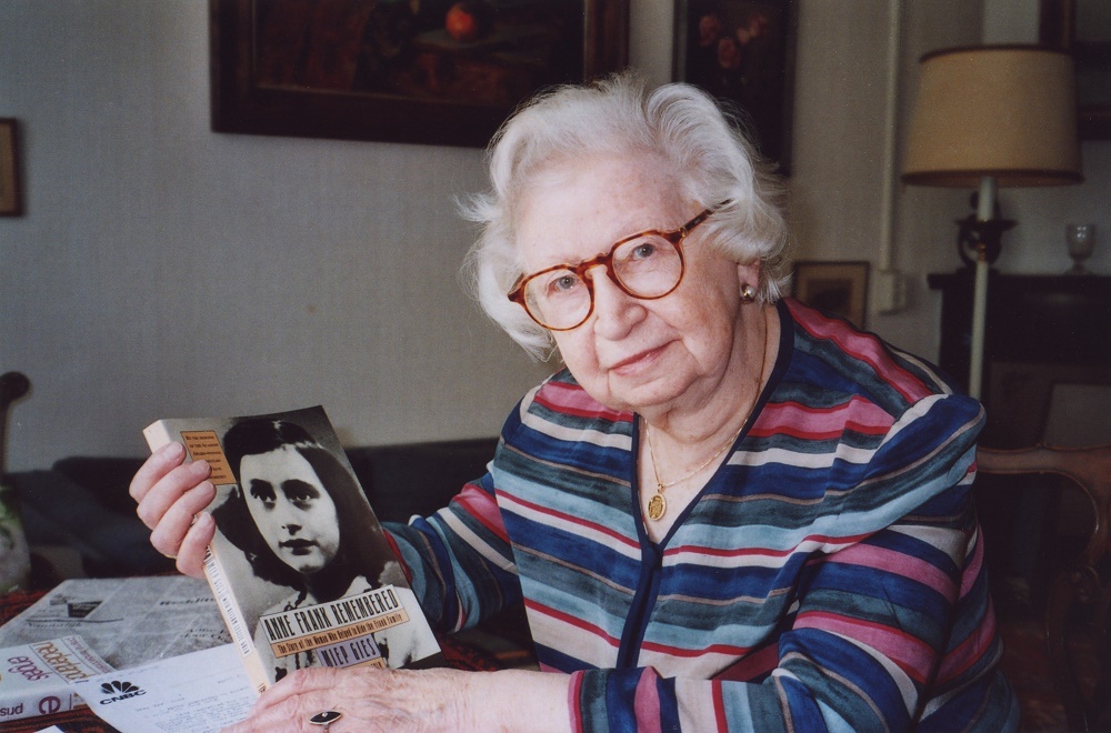 Miep Giesová patrila k Pomocníkom, ako ich nazvala Anna Franková za to, že jej rodine poskytovali tajne jedlo, knihy a psychickú podporu. Denník Anny Frankovej našla práve Miet Giesová, ktorá zomrela v roku 2010 vo veku 100 rokov.