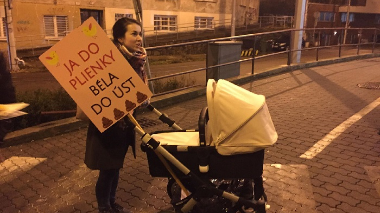Demonštrovať prišli aj desiatky mám s kočíkmi a rodičia s malými deťmi, ktorí mali pred Starou tržnicou detskú zónu. Foto - Ženy v meste