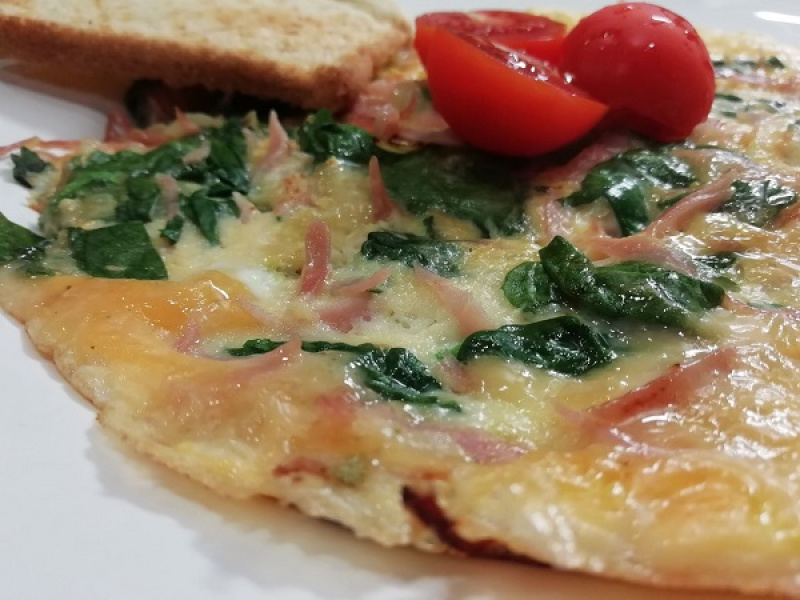 Špenátová omeleta so šunkou a syrom, tradičný recept. Foto - Nela