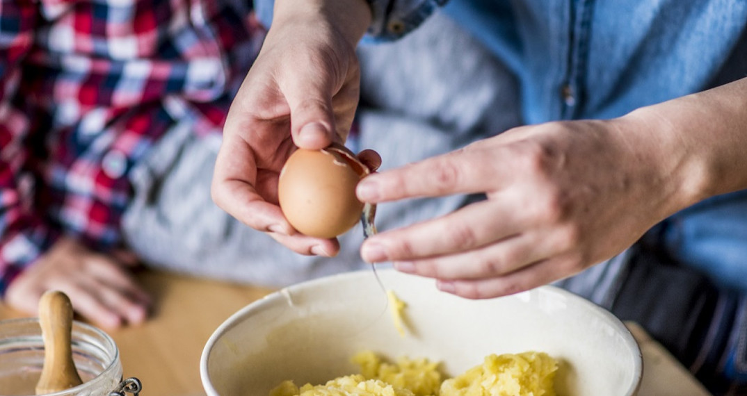 - Pridáme vajcia a postupne i múku. Ideálne cesto už drží pekne formu, ale je ešte stále trošku lepkavé. Aby sa nám s ním na drevenej doske dobre pracovalo, pomúčime si ju.
