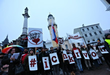 Tisíce ľudí prišli v piatok podvečer do centra Bratislavy. Z Hviezdoslavovho námestia sa účastníci vydali na Námestie slobody, ktoré úplne zaplnili. "Nech sa tu stretávame ako ľudia, ktorých táto udalosť zasiahla a dokázala spojiť. Dajme priestor odhodlaniu, spoluúčasti a láske," obrátila sa k davu organizátorka Katarína Nagy Pázmány. Foto - TASR
