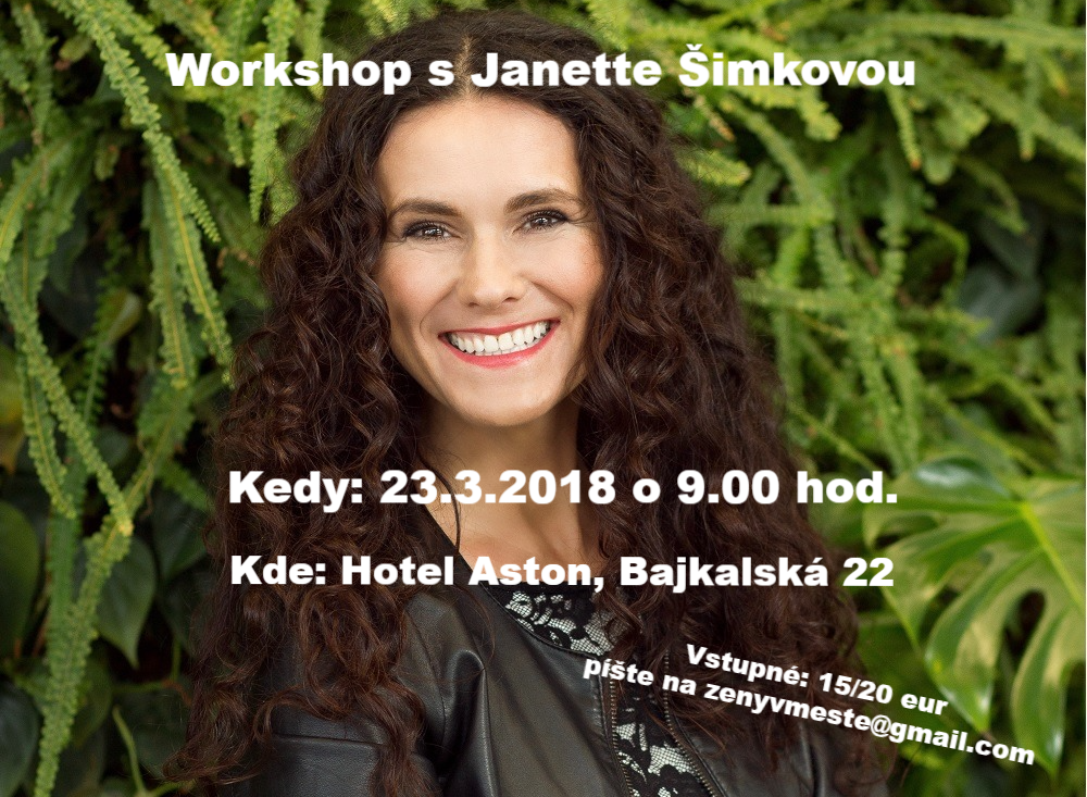 Workshop bude 23. marca 2018 od 9.00 hod. do 11.hod v Hoteli Aston na Bajkalskej 22. Pre členky Klubu žien v emste je vstupné 15 eur, pre nečlenky 20 eur. Prihlásiť sa treba na zenyvmeste@gmail.com.