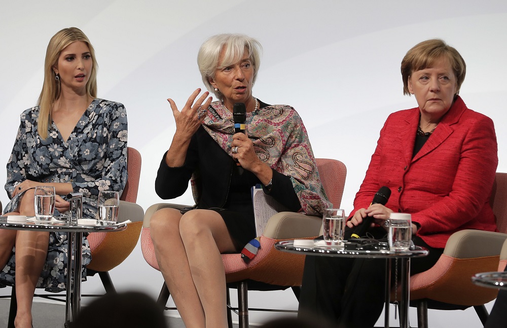 Ivanka Trumpová sa na diskusii o ekonomickom a kariérnom raste žien zúčastnila spoločne s nemeckou kancelárkou Angelou Merkelovou, s generálnou riaditeľkou Medzinárodného menového fondu (MMF) Christine Lagardeovou či s holandskou kráľovnou Máximou.